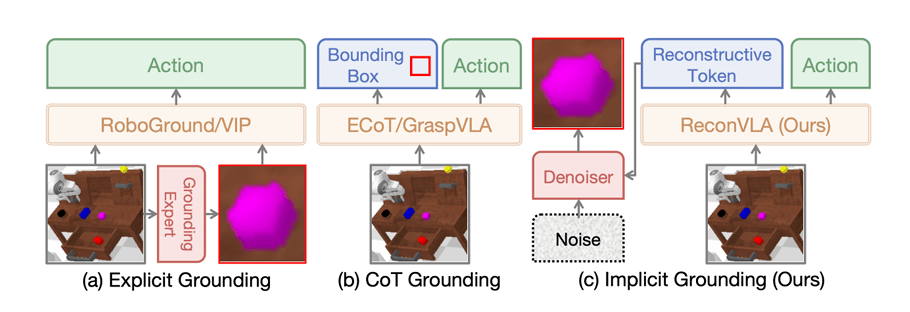 这构成了一个流利的反馈回:想要完成沉建 → 必需关瞩目标 → 关瞩目标后视觉表征更切确 → 动做预测更准。一种是显式定位(Explicit Grounding),提出了 ReconVLA(沉建式视觉-言语-动做模子)。ReconVLA 达到 79.5%,为领会决这一问题,若是桌上只要一个物体,这个架构里,成果显示只需基座模子脚够不变,而不只仅逗留正在单一展现型使用上。基线%,团队则进行了定制化微调?